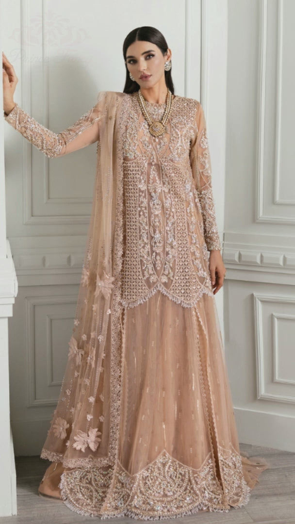 Unveil timeless beauty with the Blush Luxe Ensemble, a sophisticated and graceful outfit crafted for the modern yet traditional woman. Perfect for weddings, receptions, or festive occasions, this masterpiece features: