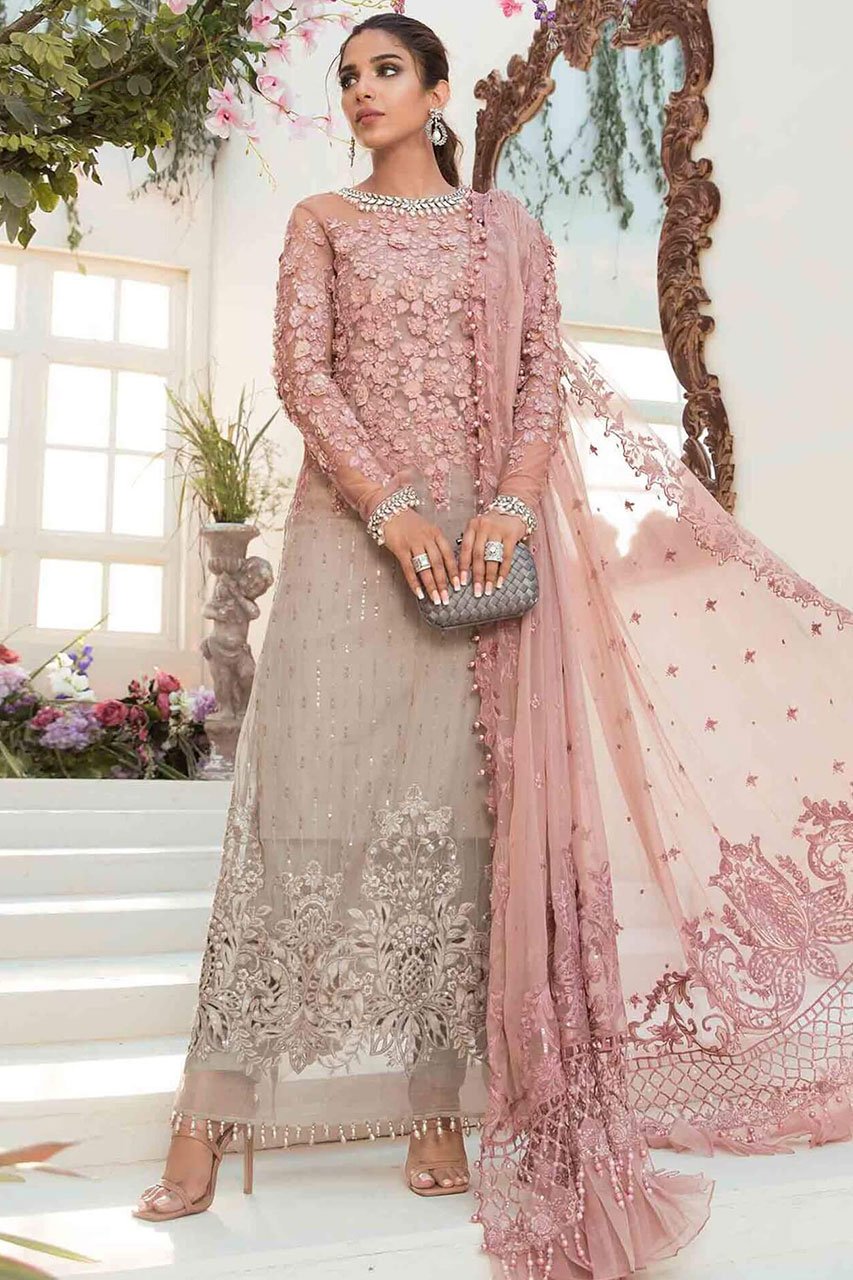 With Pearls & 3D Flowers Hand Work