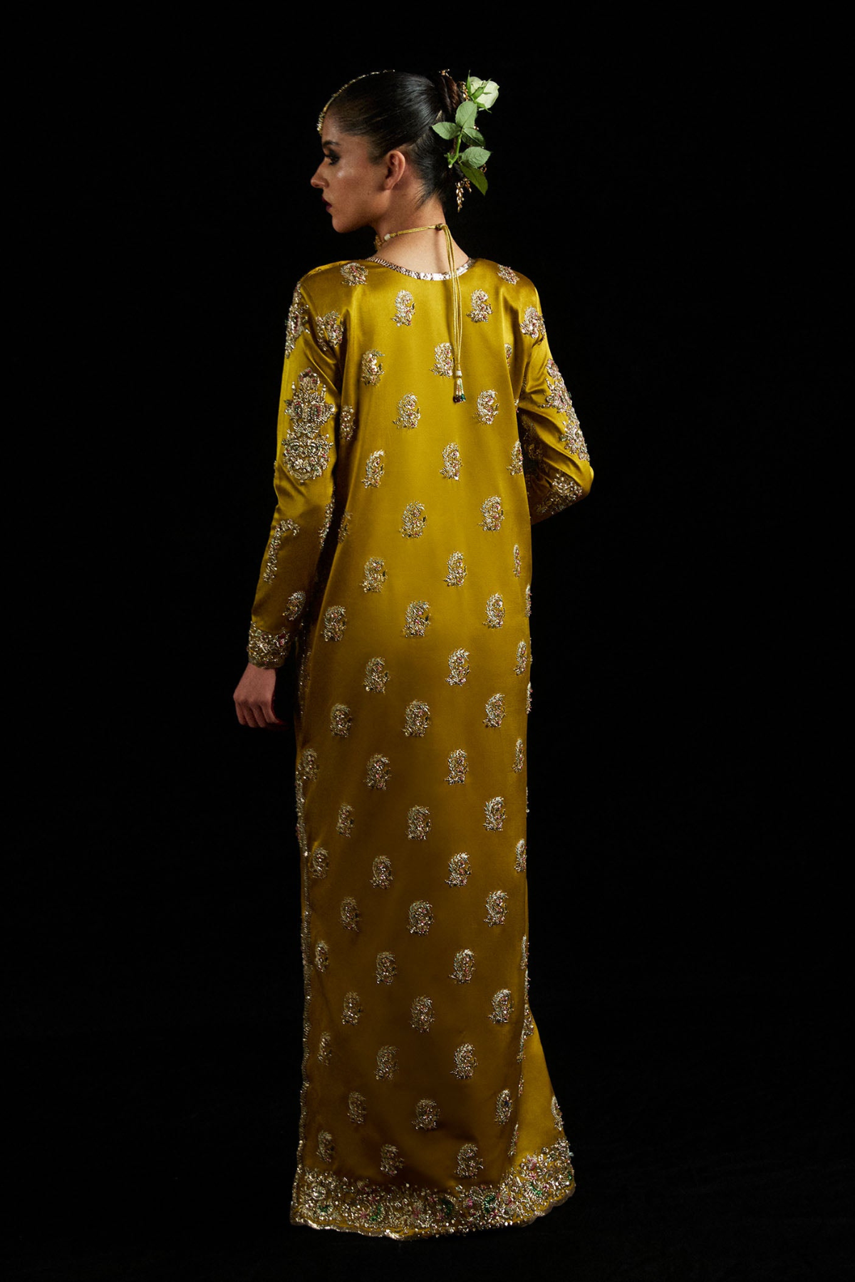 Radiate elegance with our Golden Majesty Bridal Ensemble, a masterpiece of opulence and sophistication. This luxurious mustard outfit is adorned with: