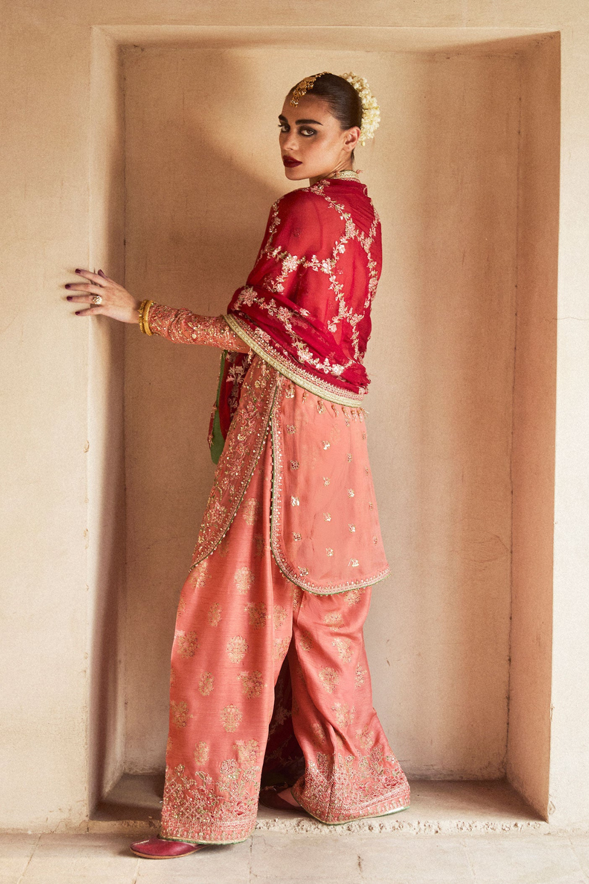 - Screen-printed and embroidered shalwar for a traditional vibe
