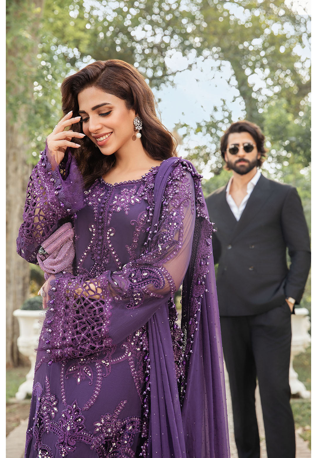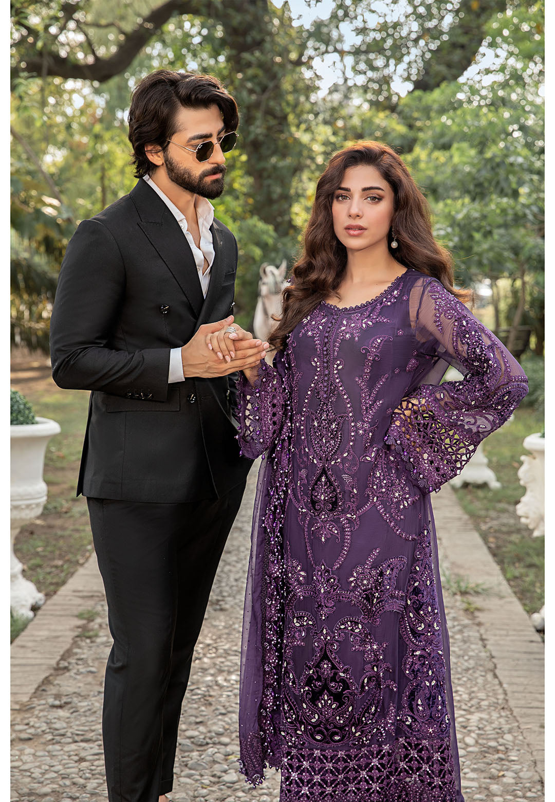 Step into elegance with this stunning purple formal wear ensemble. Crafted with intricate embroidery and delicate embellishments, this outfit is designed to make you stand out at any event. The luxurious fabric drapes gracefully, while the rich purple hue adds a regal touch. The matching dupatta flows effortlessly, complementing the detailed craftsmanship of the dress. Perfect for weddings, formal dinners, or evening parties, this outfit is sure to make a lasting impression.