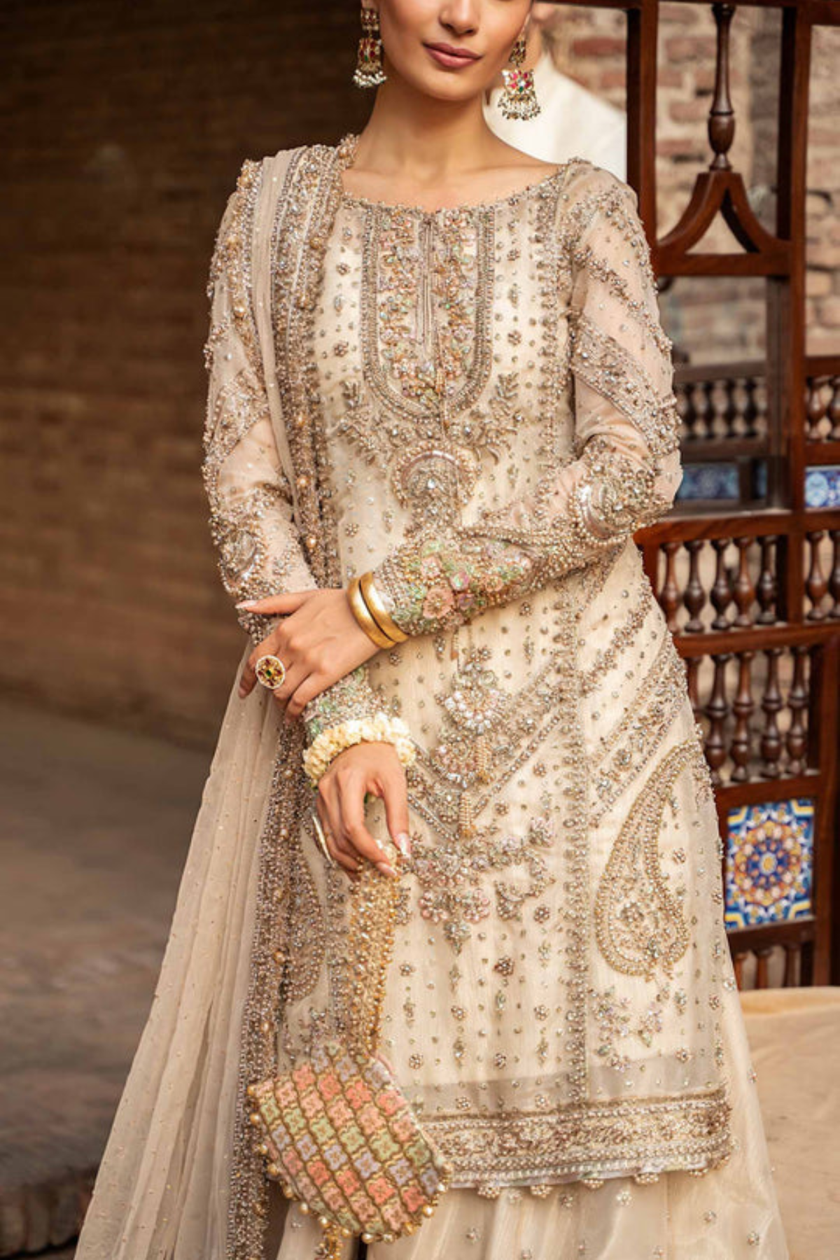 Embrace the beauty of tradition with this breathtaking ivory gold ensemble! Adorned with intricate embroidery, delicate embellishments, and regal details, this outfit is a perfect choice for weddings and festive celebrations. Elevate your style and leave a lasting impression.