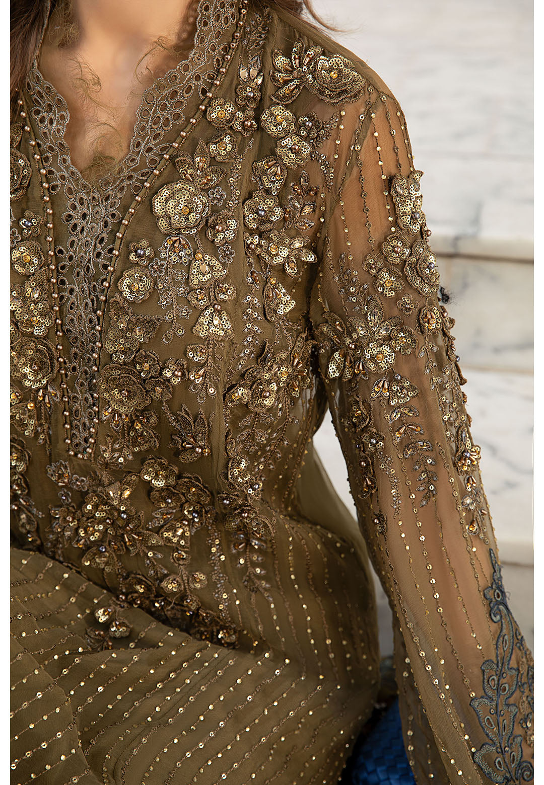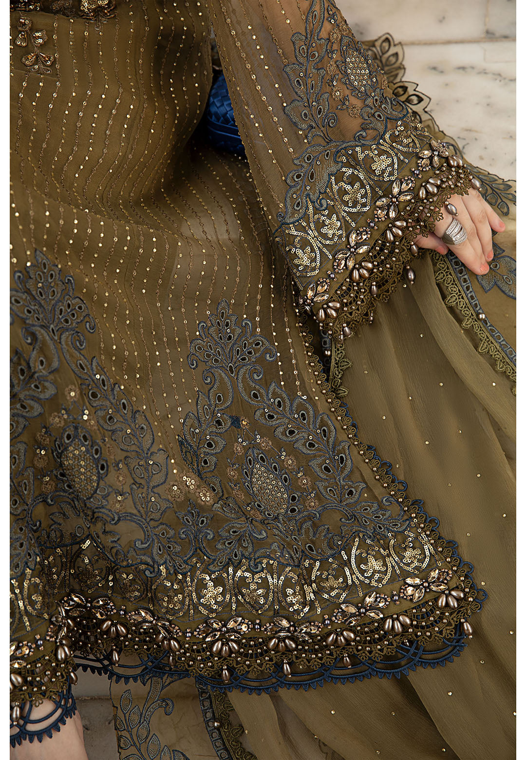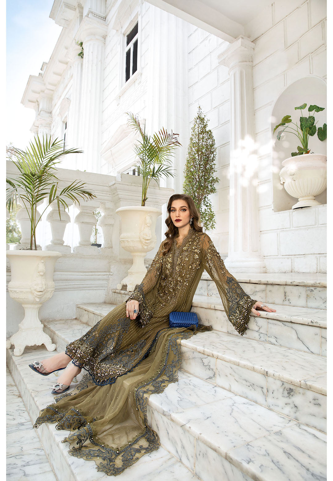 Exude timeless elegance with this olive green formal attire, designed for those who appreciate luxury and sophistication. The intricate embroidery and beadwork elevate the outfit, making it an exquisite choice for special occasions. Paired with a matching dupatta, this ensemble is both elegant and versatile, perfect for weddings, evening events, or festive gatherings. The unique olive hue adds a contemporary touch to a classic silhouette, ensuring that all eyes are on you.