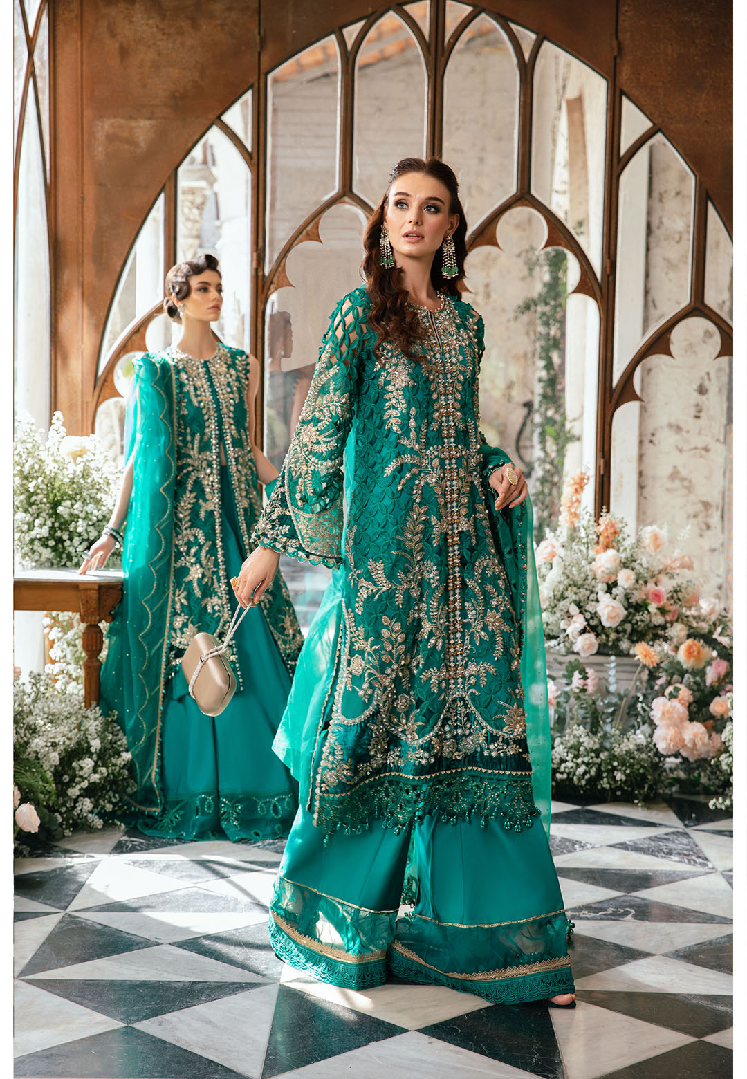 Embroidered Organza Front Panel Left With Luxury Hand Embellishment