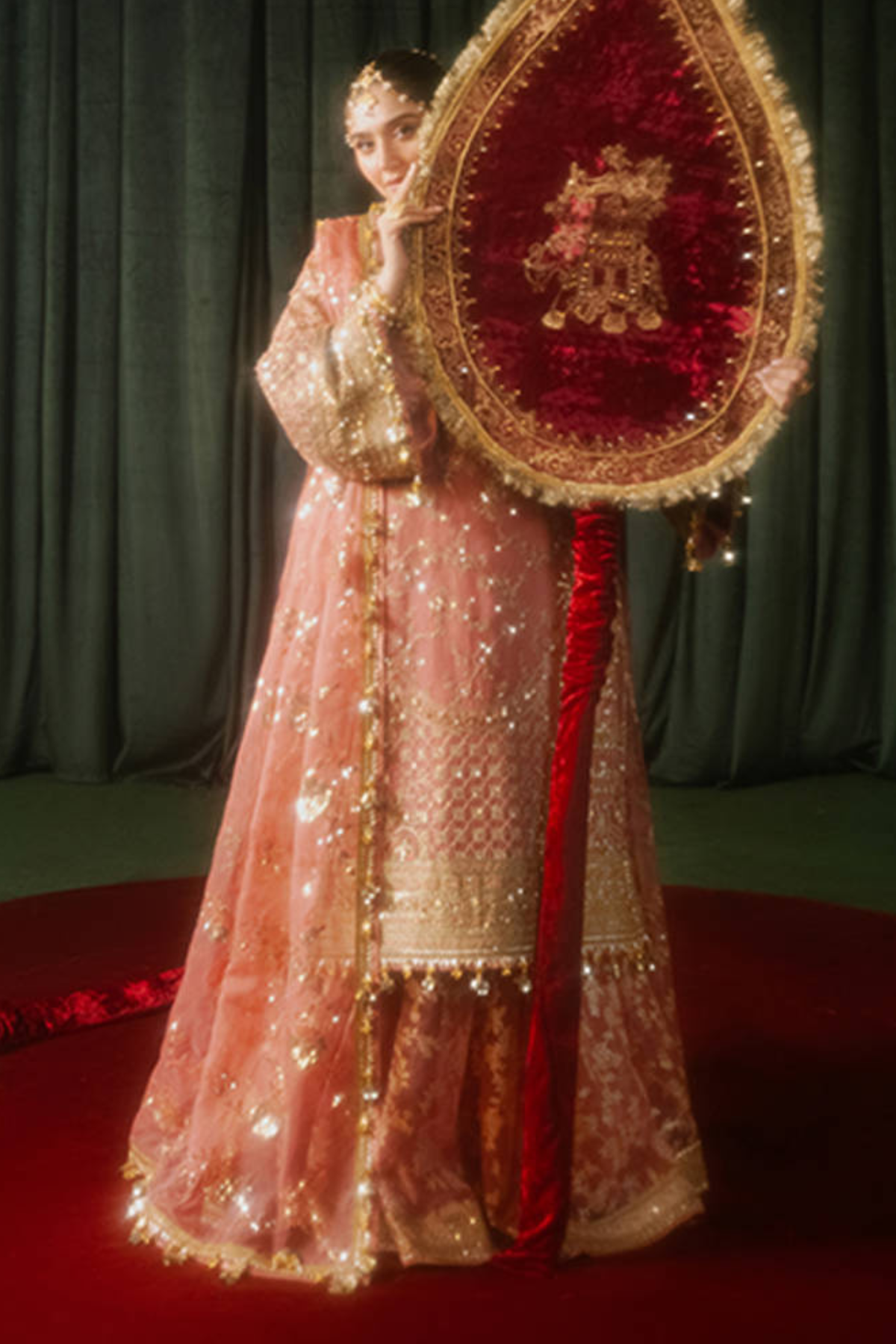 Step into a world of sophistication with the enchanting Guriya Rani Ensemble. This soft pink organza masterpiece is a vision of grace, featuring exquisite golden embroidery, delicate embellishments, and a flowing silhouette that exudes timeless beauty. Perfect for weddings, receptions, and festive occasions, this outfit is designed to make you feel like royalty.
