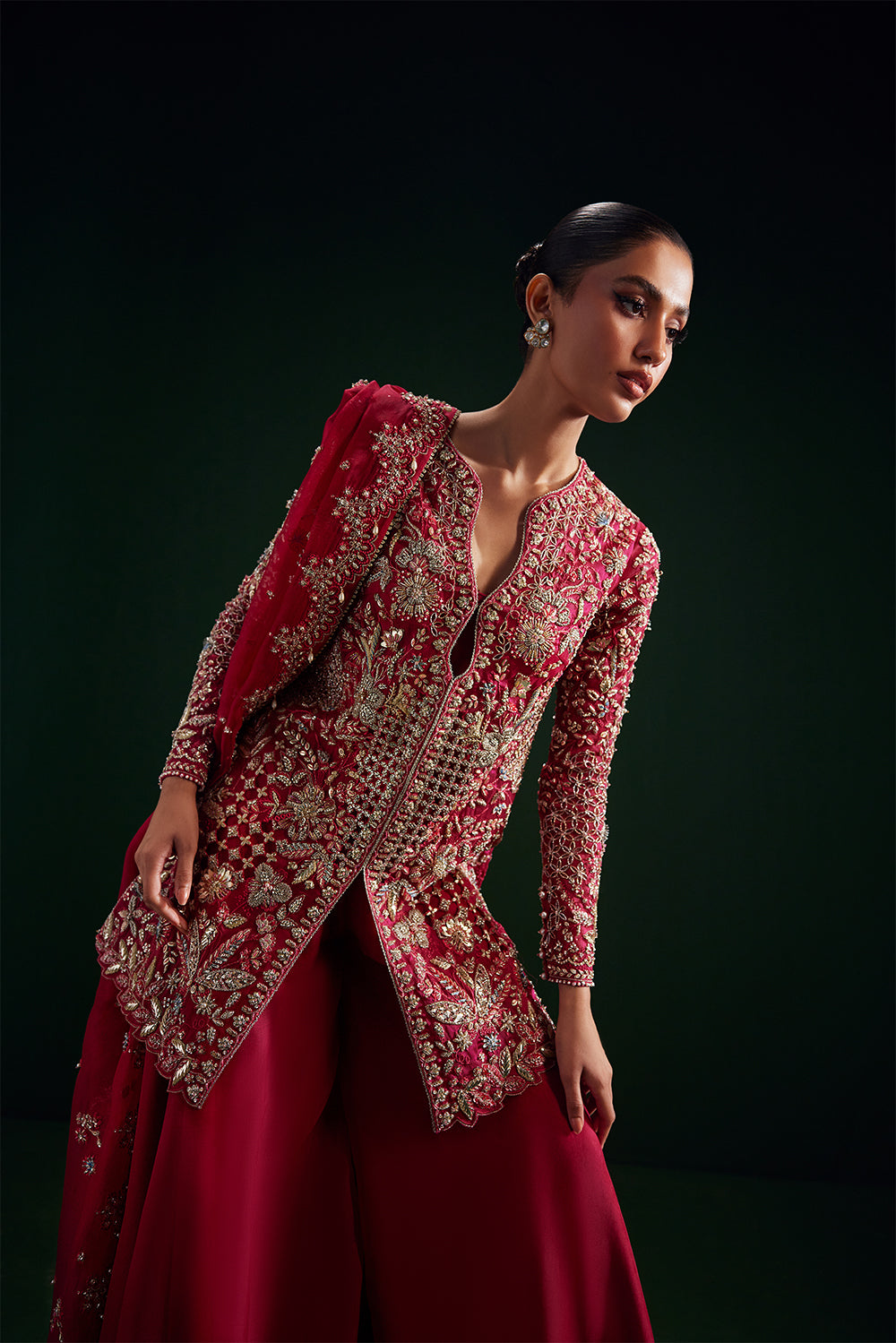 - Organza dupatta with delicate embroidery, adding an ethereal and elegant finish